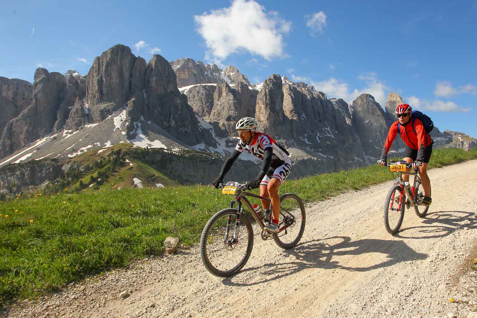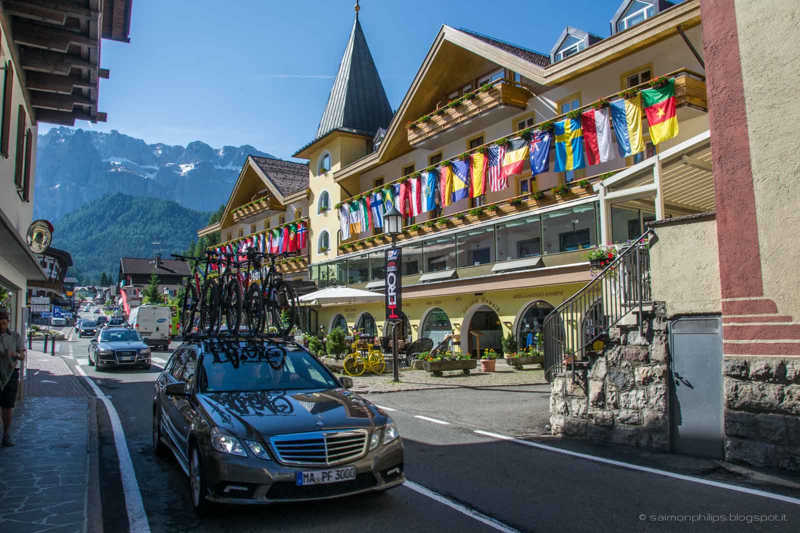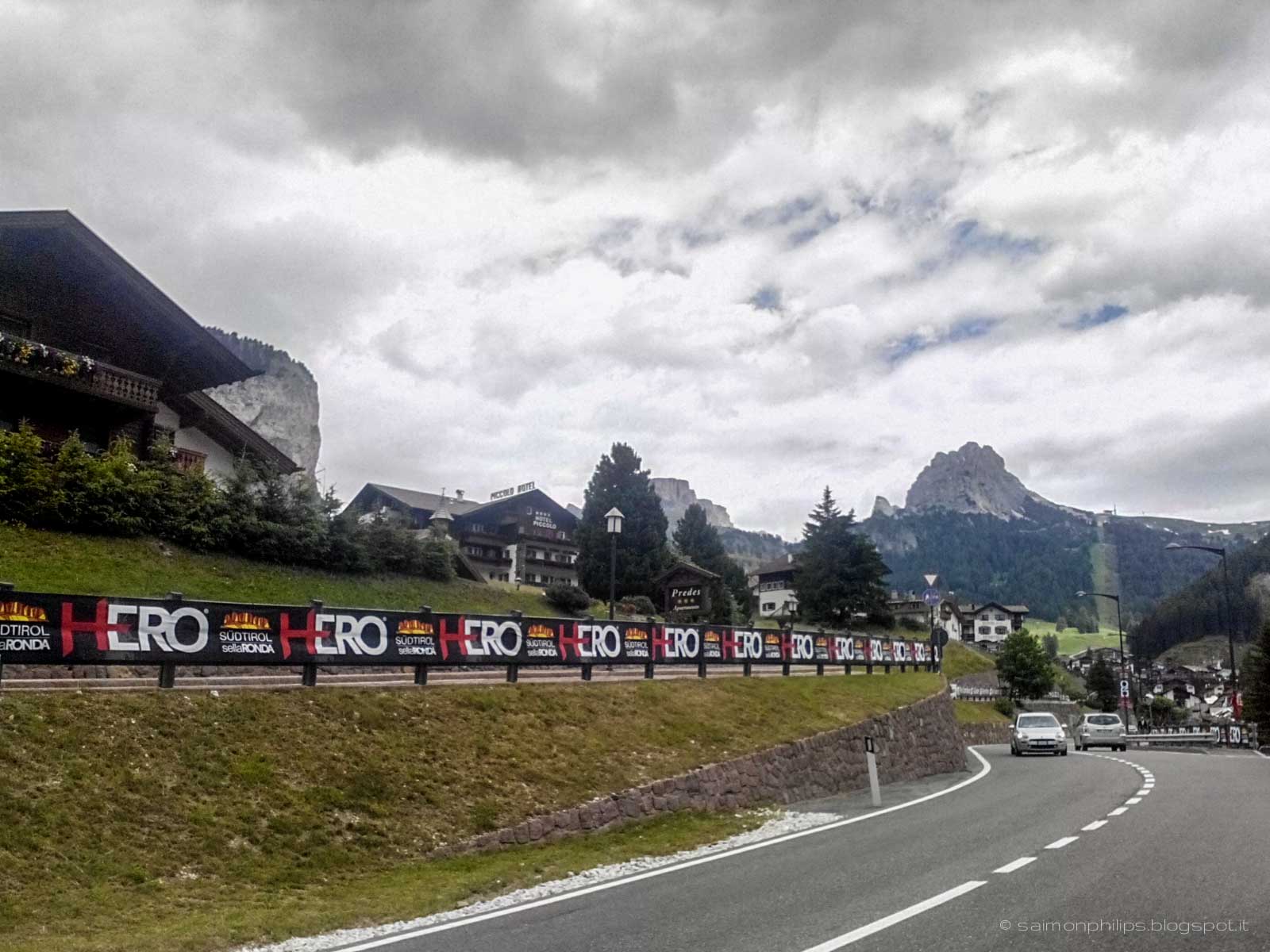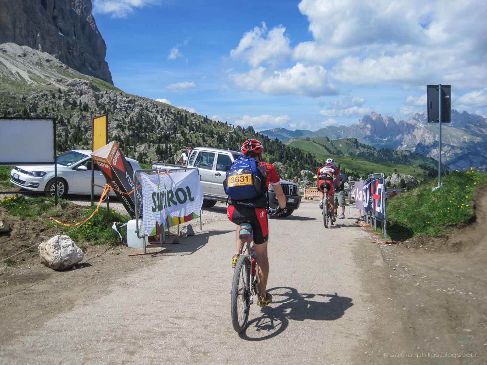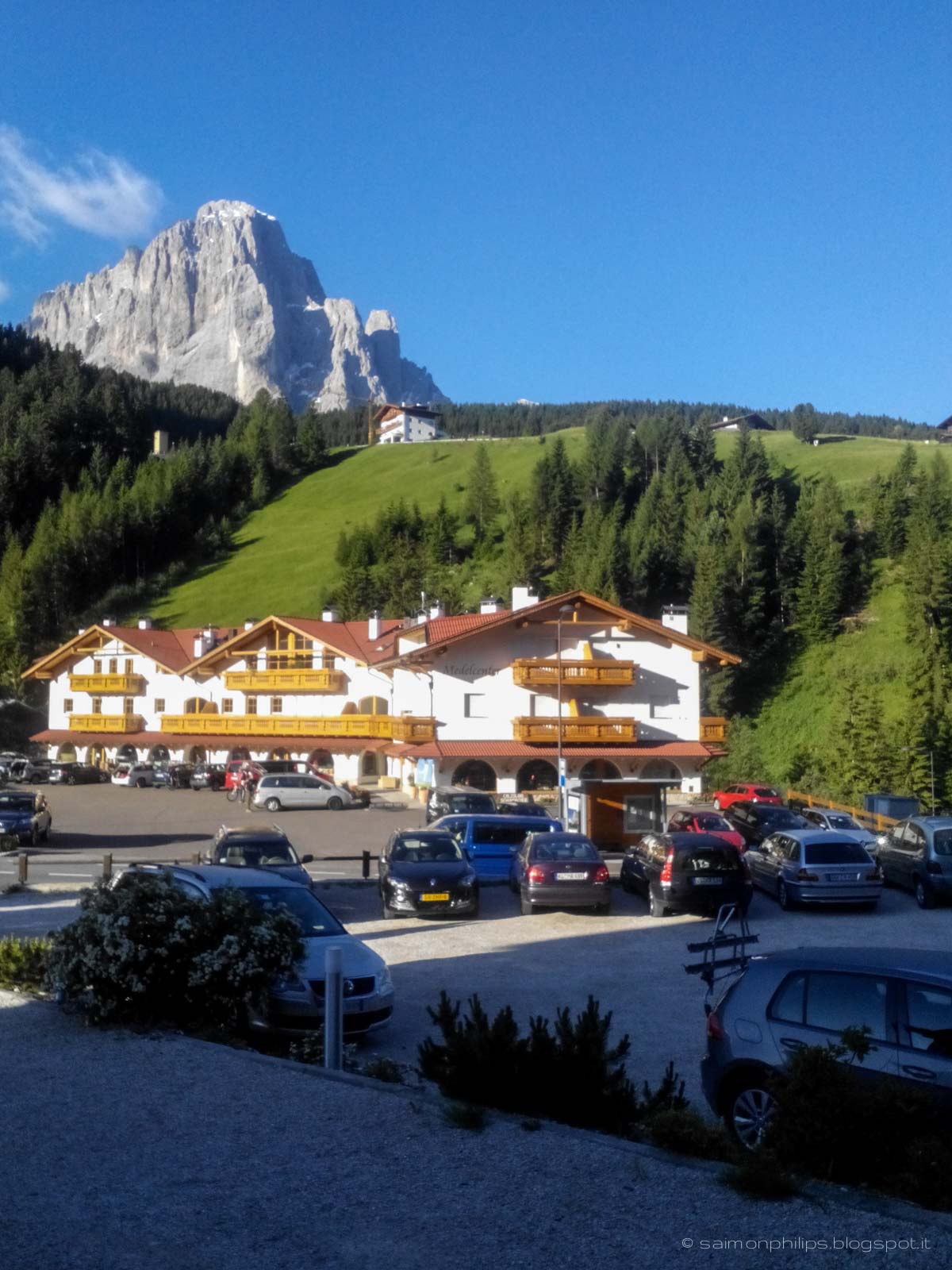 Si ritorna sui tornanti asfaltati fino al passo del Pordoi poi giù verso il Lupo Bianco.