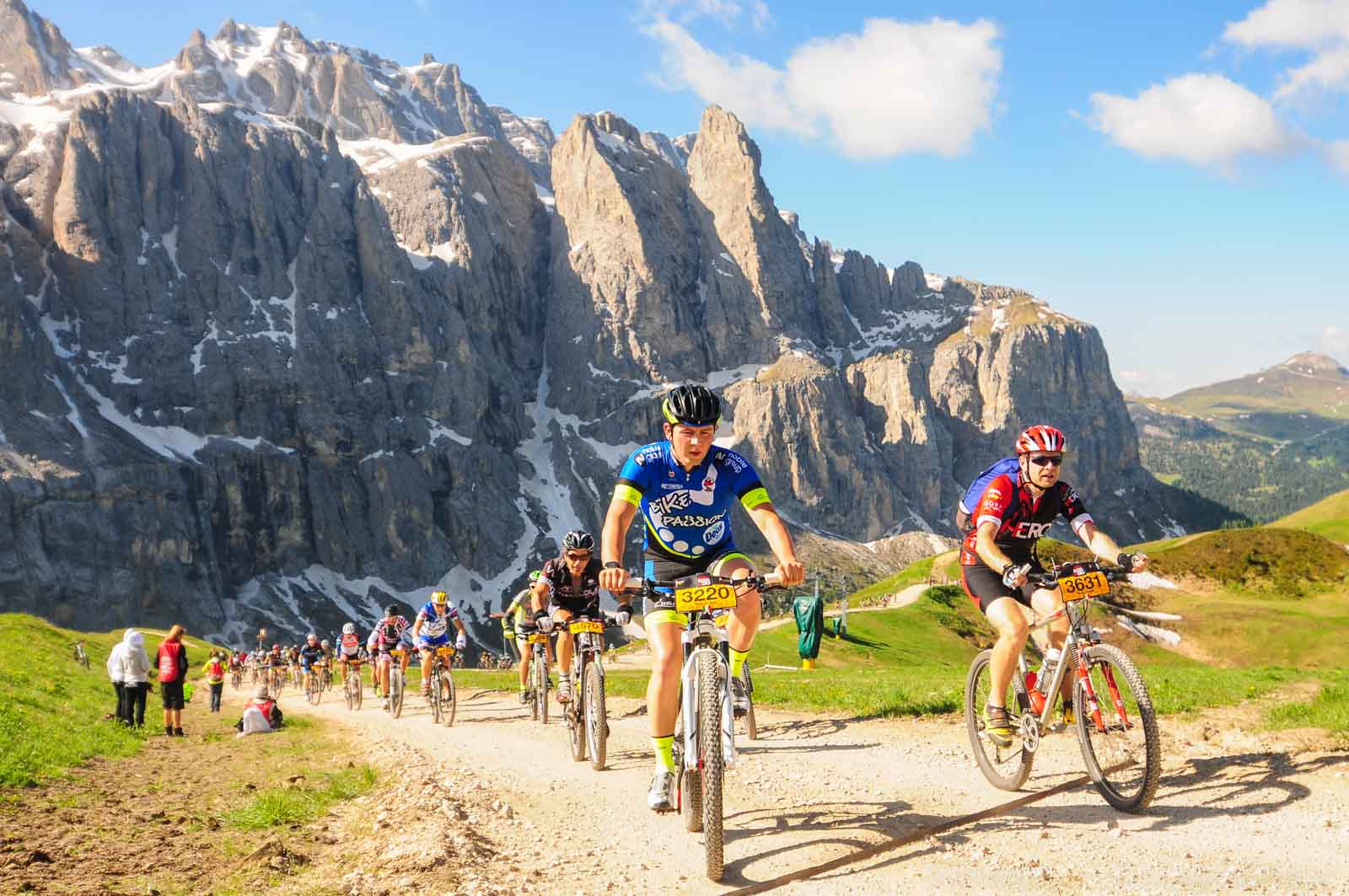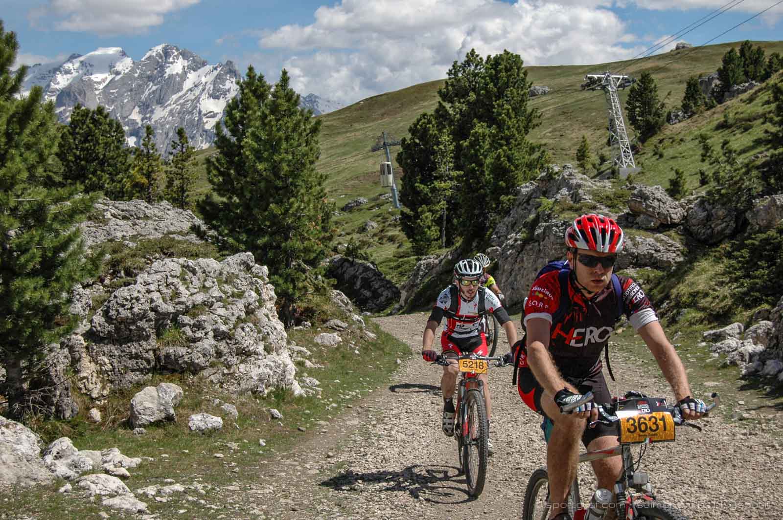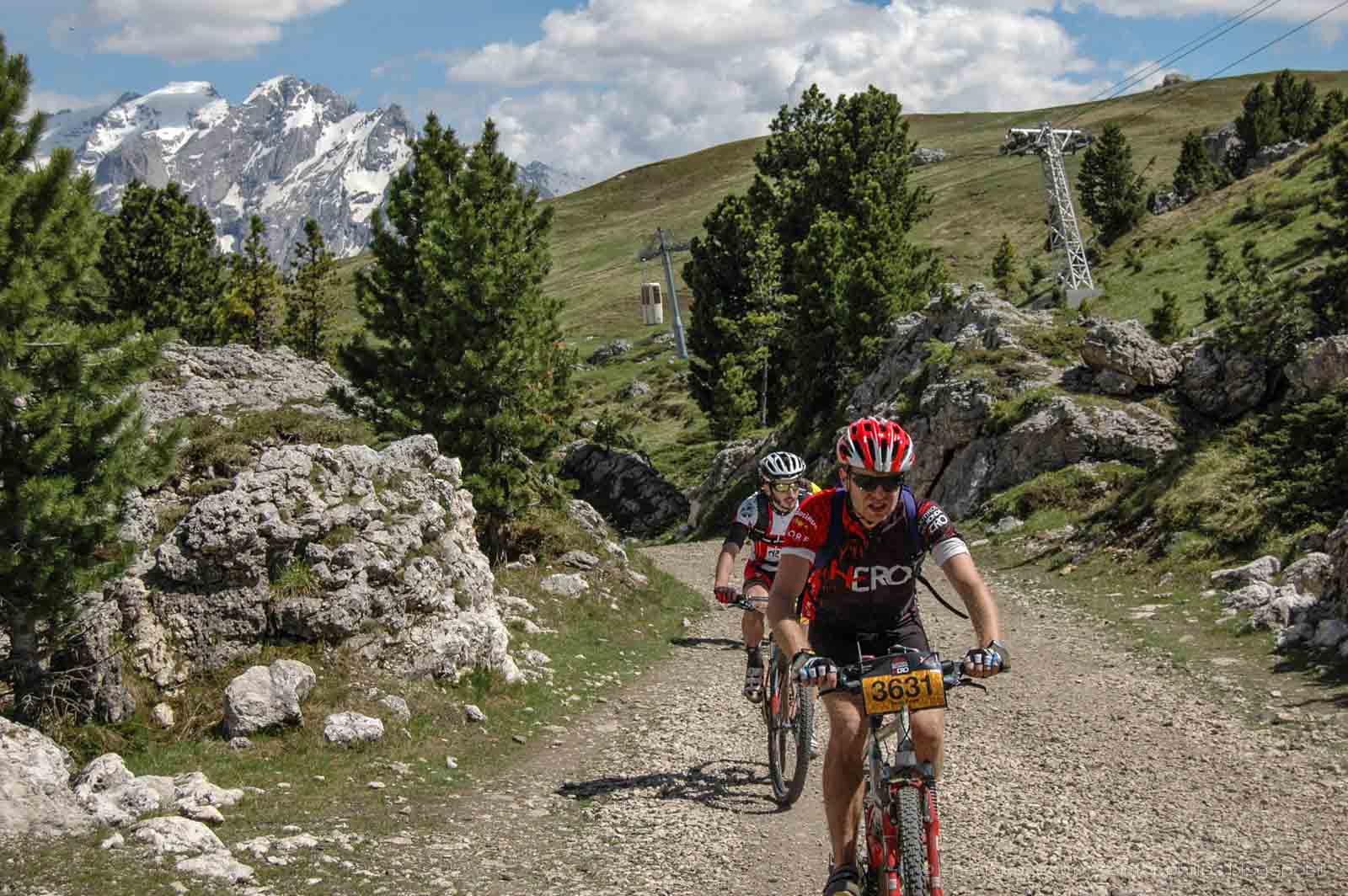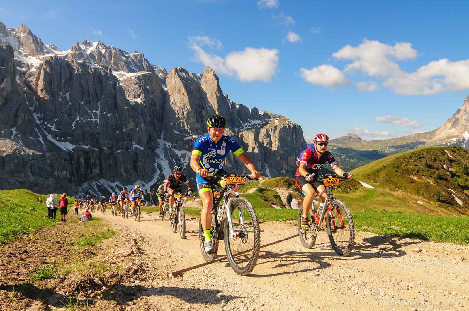 Si ritorna sui tornanti asfaltati fino al passo del Pordoi poi giù verso il Lupo Bianco.