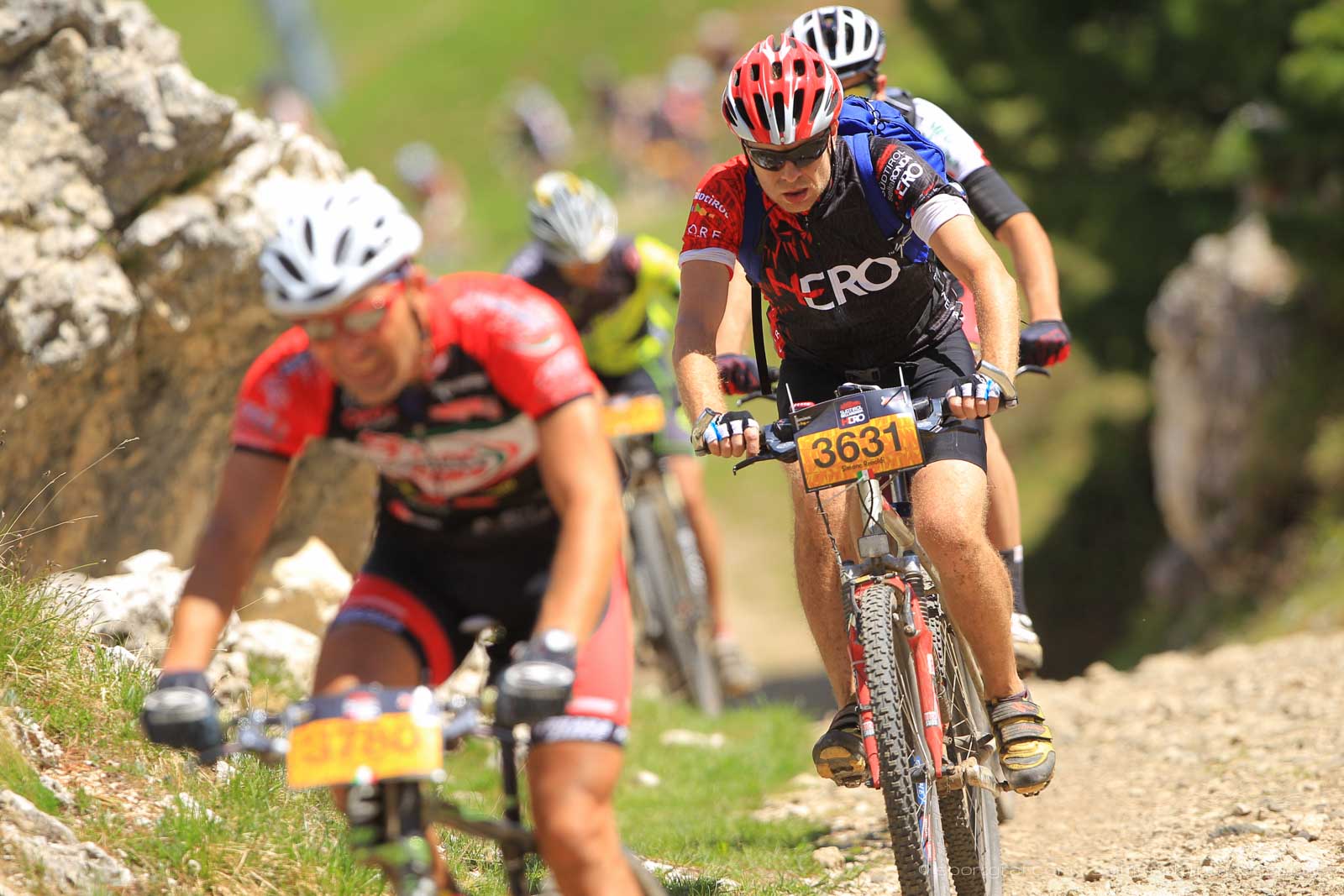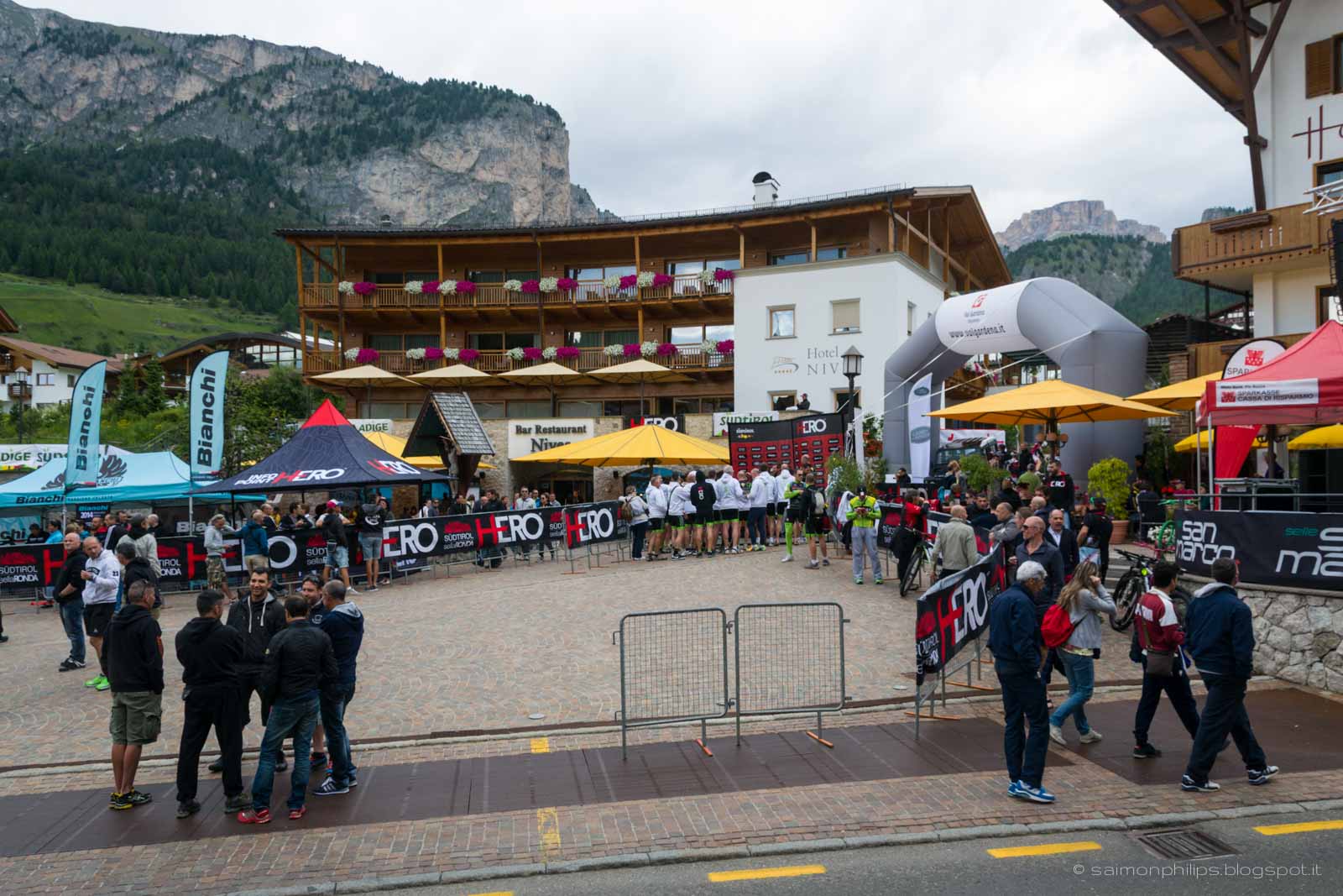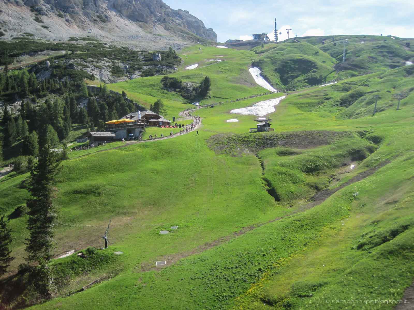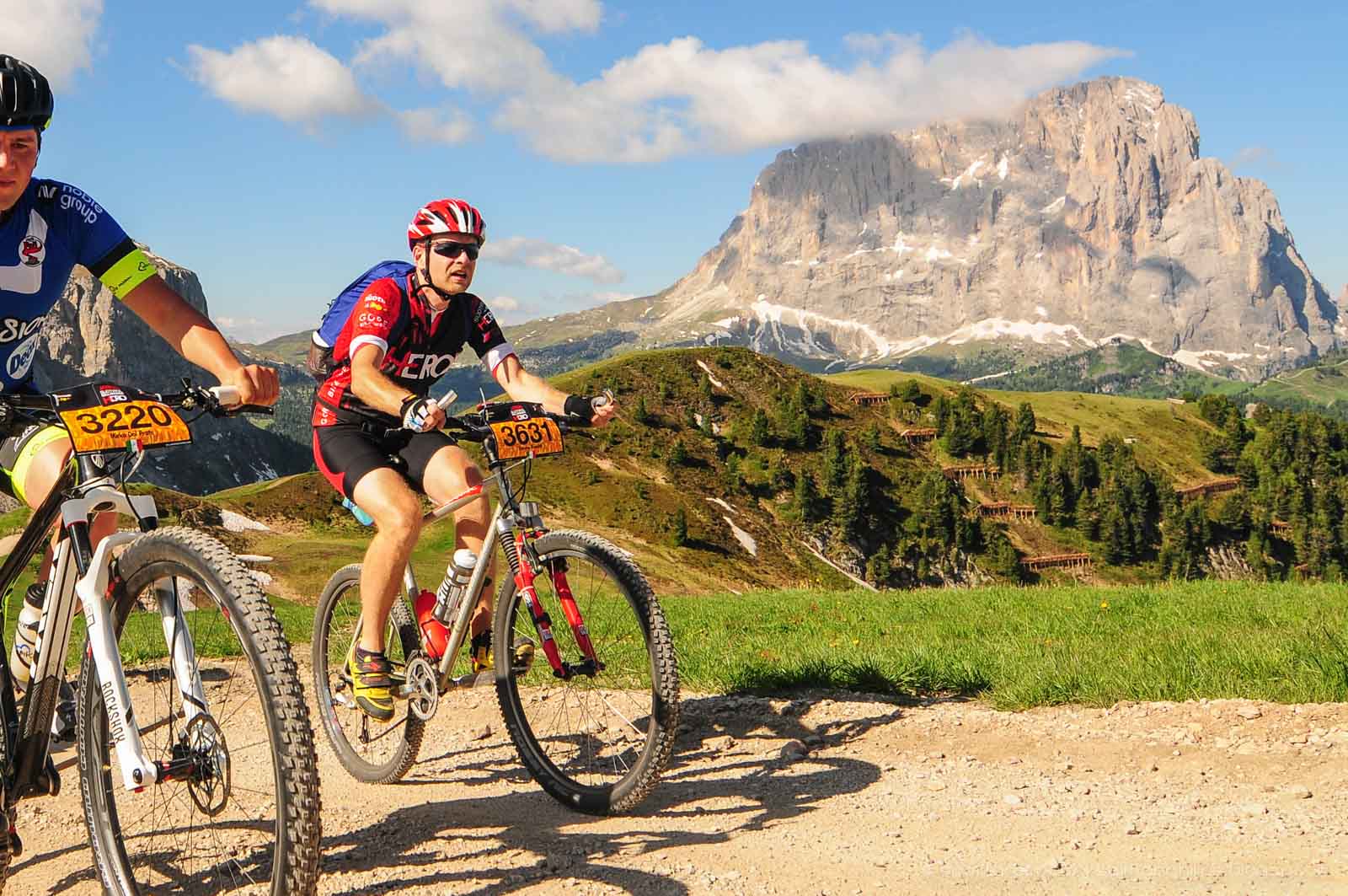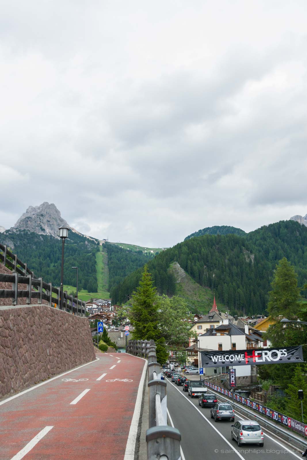 Si ritorna sui tornanti asfaltati fino al passo del Pordoi poi giù verso il Lupo Bianco.