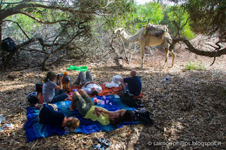 Per pranzo ci si ferma in una radura all’ombra, tra gli arbusti nell’entroterra.