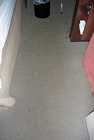 Nelle camere vi è la moquette e grossi tendoni alle finestre che non danno proprio l’aria di un ambiente pulito. La poltroncina ricoperta di tessuto rosso aveva i braccioli e lo schienale neri. Ho chiesto un paio di volte di pulirla ma è stata solamente spazzolata energicamente.