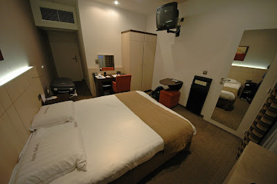 Sono stato in questo albergo un mese esatto, nella stanza n°14 che si trova al primo piano sull’angolo dell’edificio. Si tratta di una stanza doppia abbastanza spaziosa, con scrivania , poltrona, due comodini, un armadio con cassaforte e minibar, una specie di asse da stiro, un piccolo tavolino smontabile e una tv appesa.