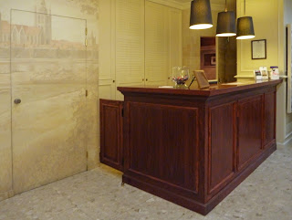 La reception è abbastanza piccola e appena sulla sinistra si cela una porta nascosta che da su una scalinata curva che porta ai piani superiori.