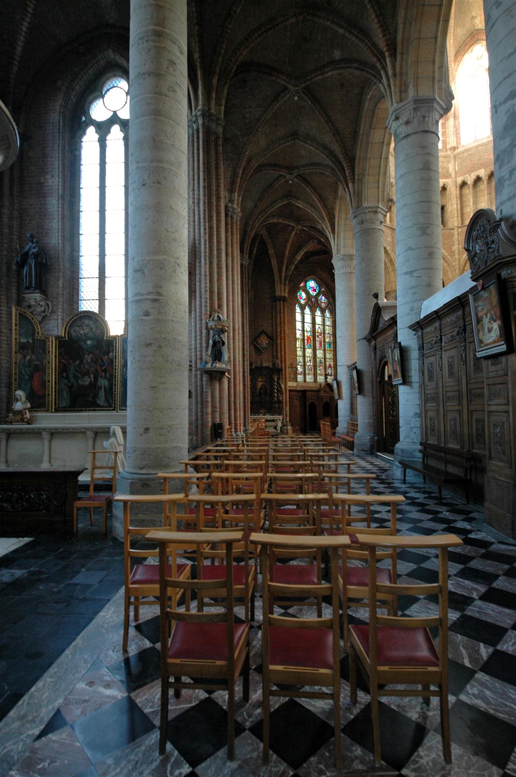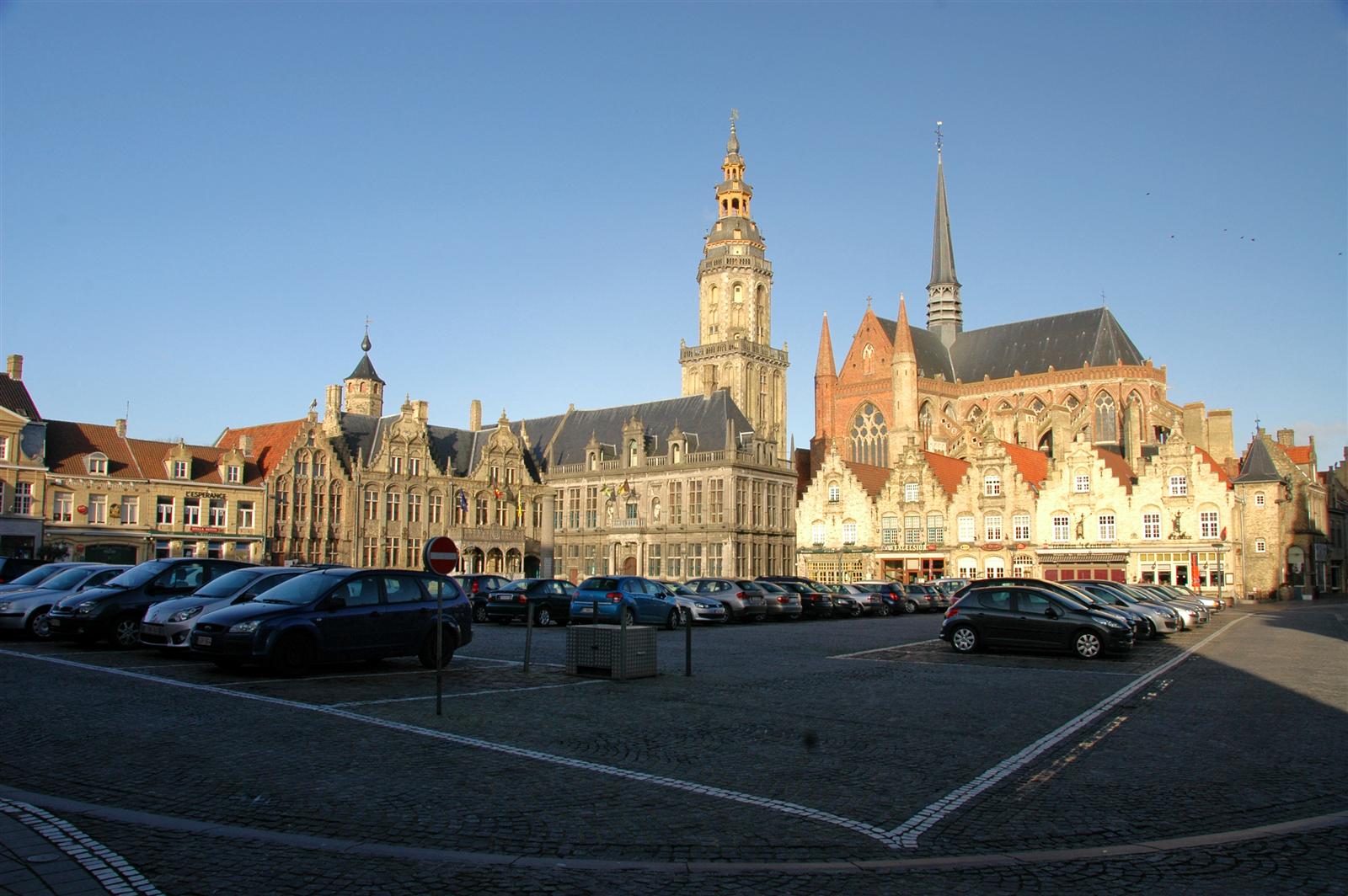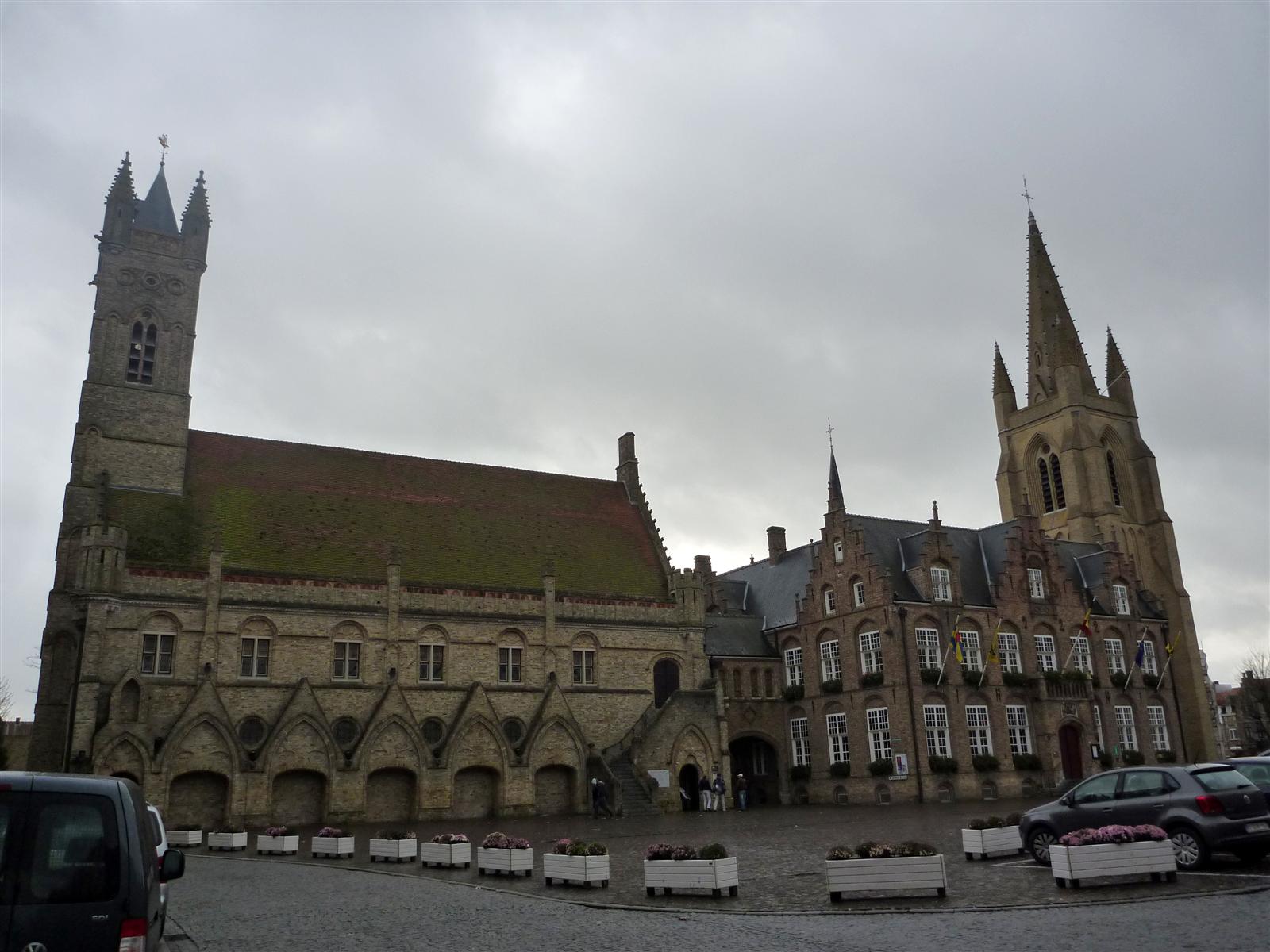 La domenica mattina, in novembre, si presenta quasi deserta con la sua grand place circondata da abitazioni dai tipici profili merlati.