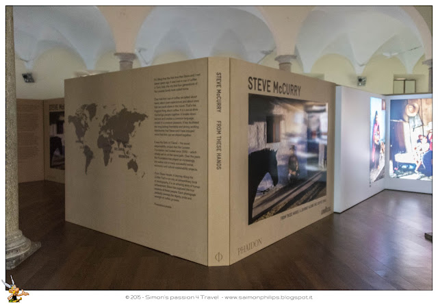 Foto giganti stampate su tela e retroilluminate disposte proprio come pagine di un libro che viene sfogliato man mano che ci si inoltra nel percorso espositivo.