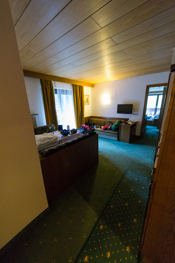 Ho prenotato questo hotel tramite booking e all’arrivo mi dicono che a causa di una sovrapposizione mi hanno assegnato un’appartamento al vicino residence Nevada, molto grande e quindi sicuramente più spazioso per 4 persone. Certo, ma a scapito della pulizia giornaliera e dell’accesso diretto alla colazione e alla spa.