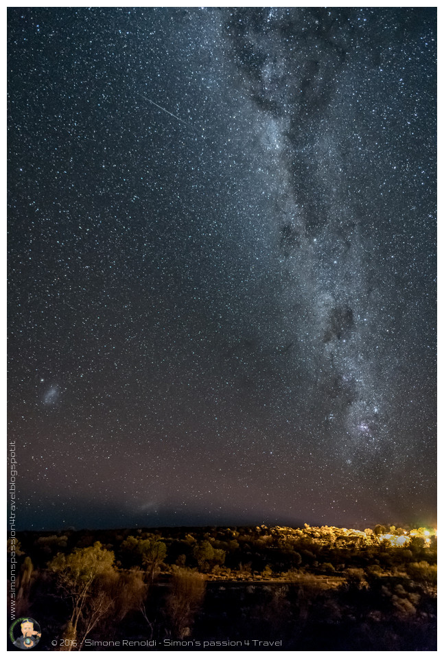 Si è proprio in mezzo al nulla e a parte le luci del resort sono gli astri del cielo ad illuminare la notte con una via lattea ad offrire il meglio di sé col suo nucleo così luminoso che in contrasto al nero circostante sembra quasi tridimensionale.
