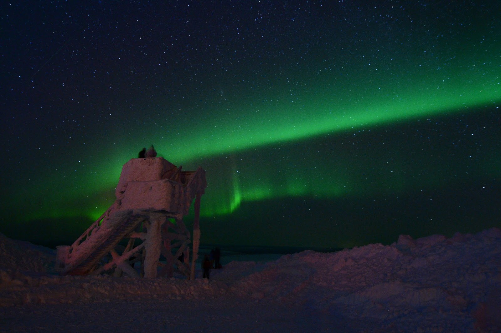 L’aspettativa non viene delusa e appena giunti sul punto osservativo (Kaunispaa , bar ristorante Huippu) poco fuori Saariselka l’aurora è lì ad attenderci.