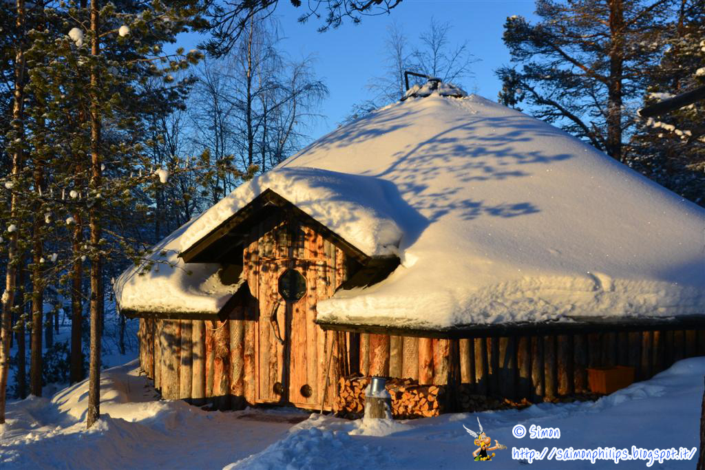 Si rientra in albergo per la cena e subito dopo in riva al lago la tradizionale sauna finlandese riscaldata dalla stufa a legno accoglie 6 temerari che usciranno poi in costume sulla neve per raggiungere la pozza di acqua calda, che più che una jacuzzi sembra un pentolone per cannibali 🙂 !