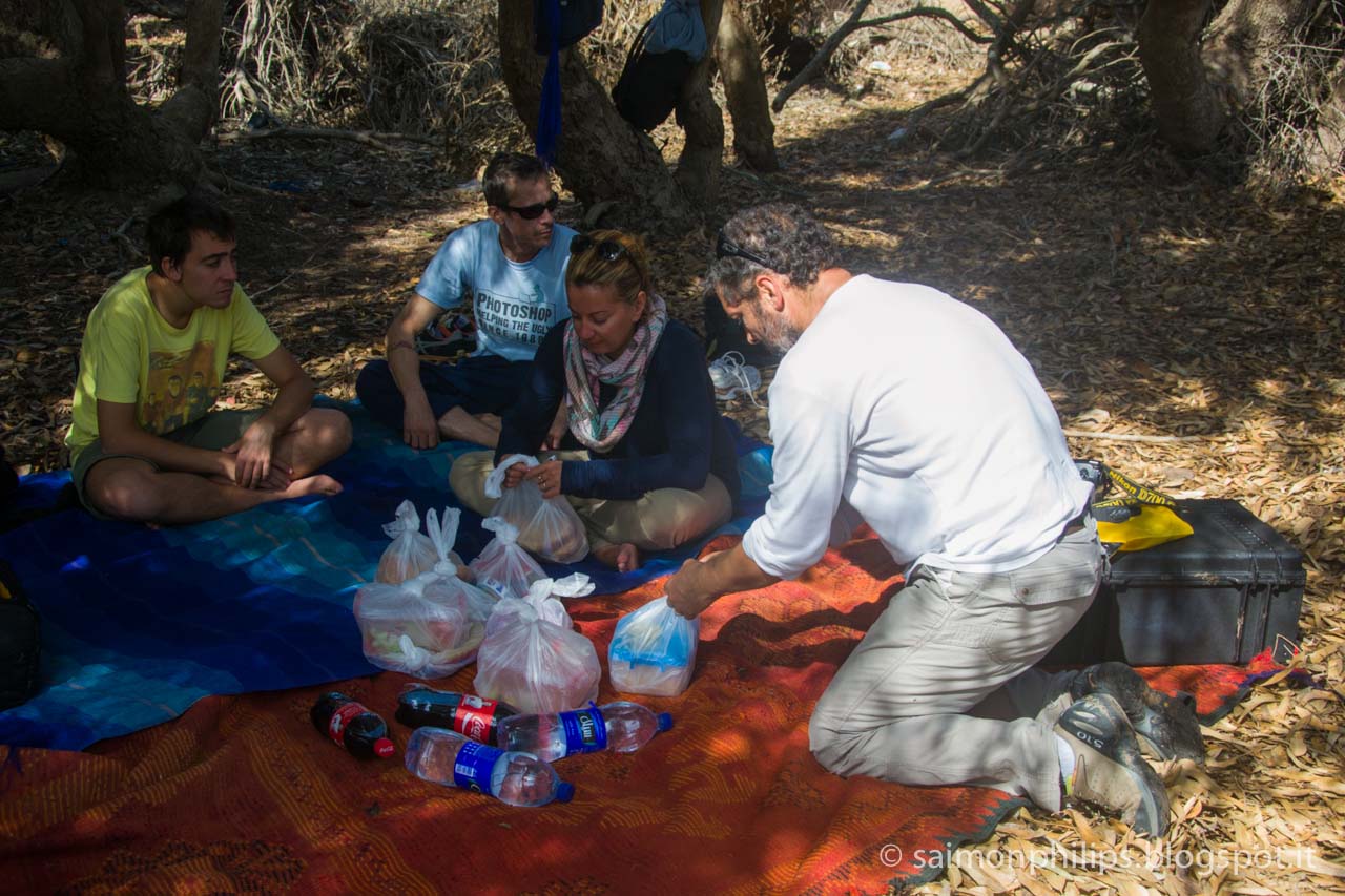 Per pranzo ci si ferma in una radura all’ombra, tra gli arbusti nell’entroterra.