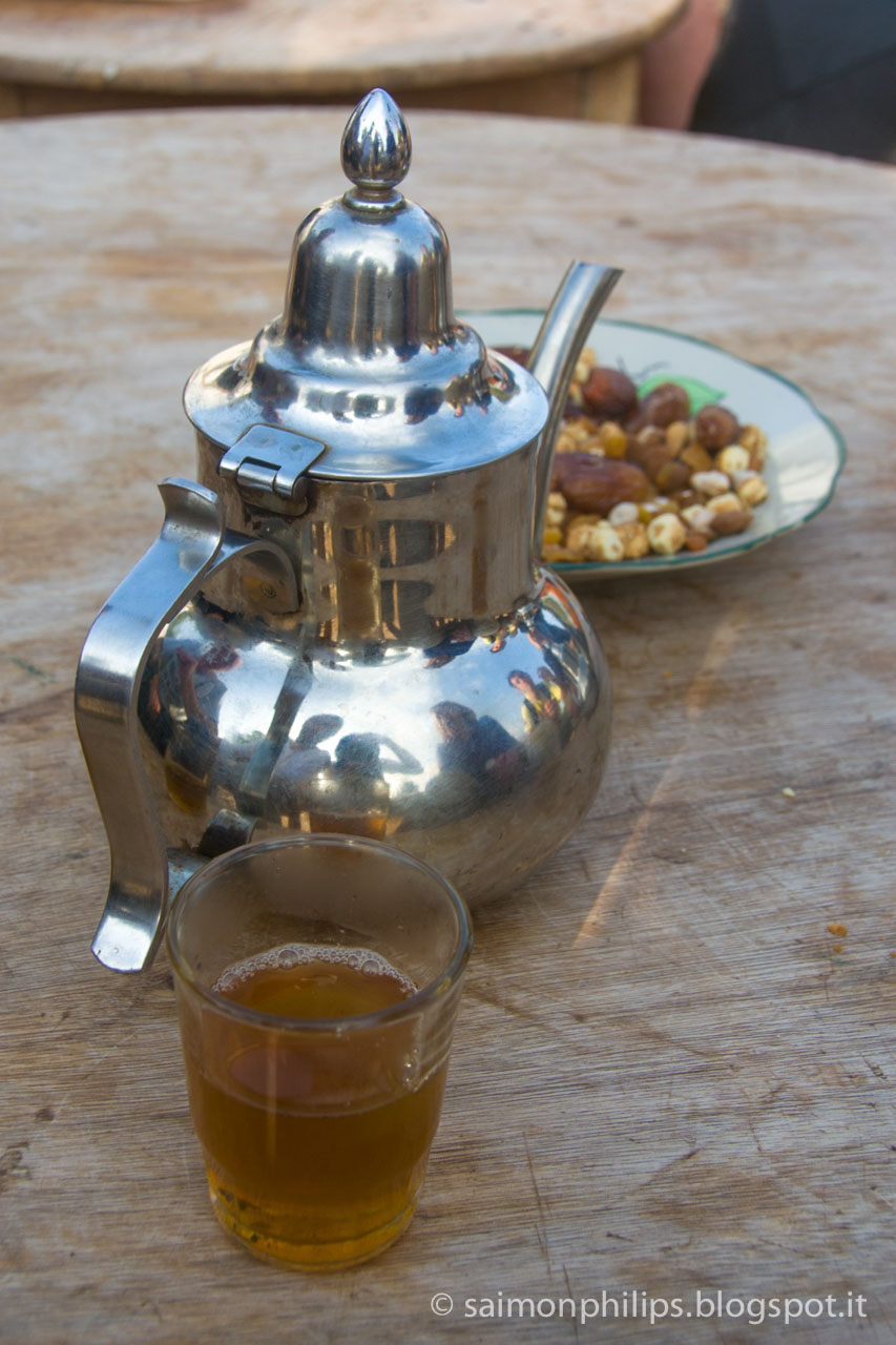 attendiamo l’ora del tramonto sorseggiando un tè alla menta marocchino.