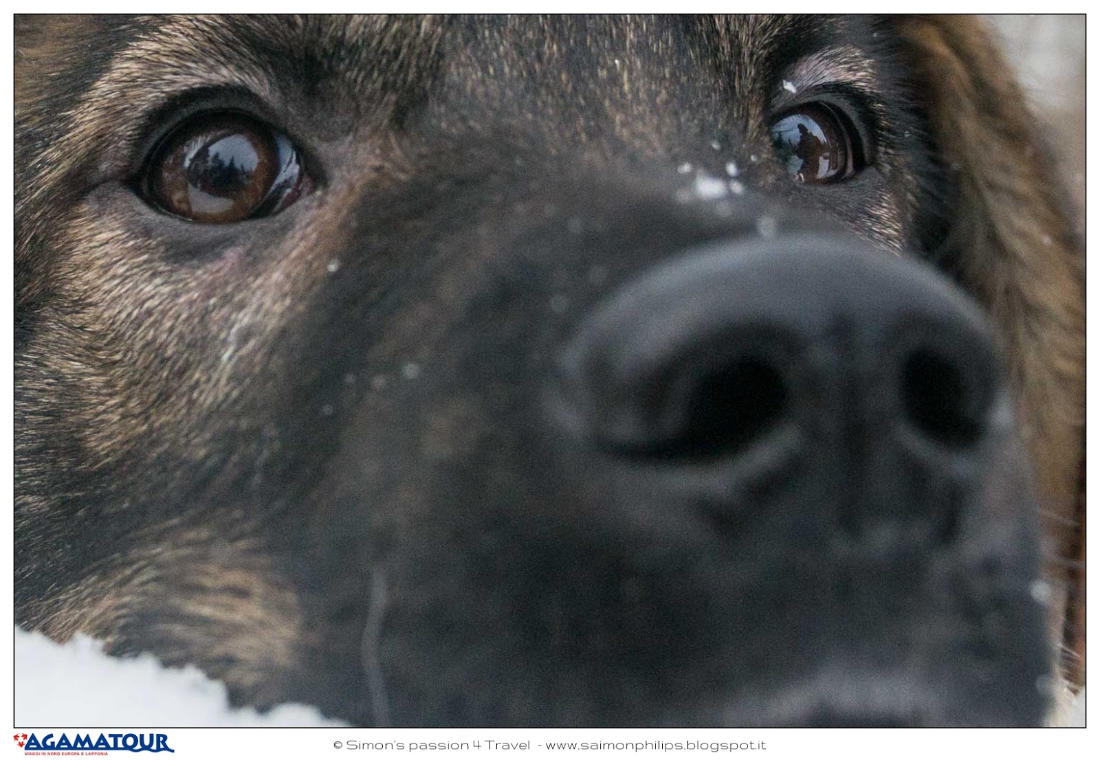 Quando si raggiunge l’allevamento si sente subito in lontananza il latrato dei cani che scalpitano per poter correre in mezzo alla neve.