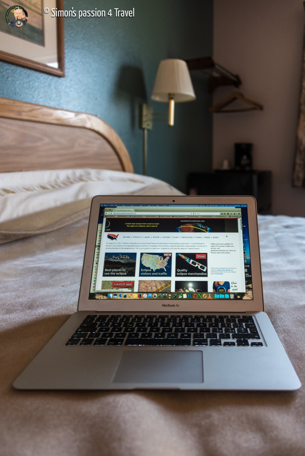 Il viaggio partiva da Las Vegas, attraversava 7 stati e 7 parchi nazionali per concludersi a Denver in Colorado. La notte prima dell’eclissi era stata ovviamente pensata in un hotel all’interno della fascia di totalità a pochi chilometri da Riverton nel Wyoming. Ironia della sorte qualche mese prima della partenza e senza preavviso l’albergo che avrebbe dovuto ospitarci decise di chiudere i battenti. Così il 20 agosto, in arrivo dallo Yellostone National Park, approdammo al Sunset Inn di Worland uno sperduto paesino del Wyoming appena fuori dalla fascia di totalità.