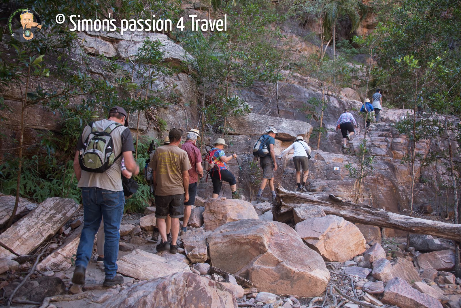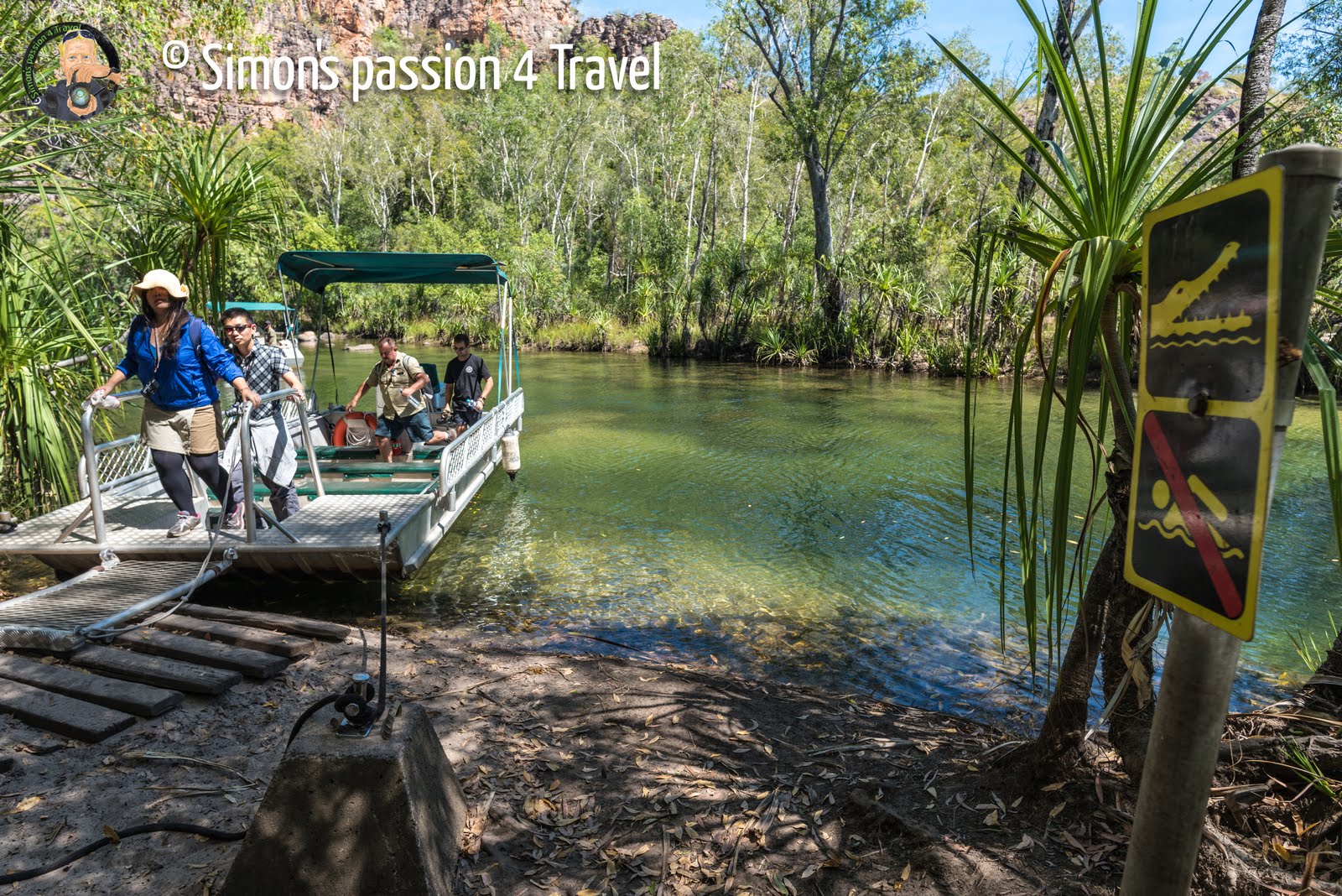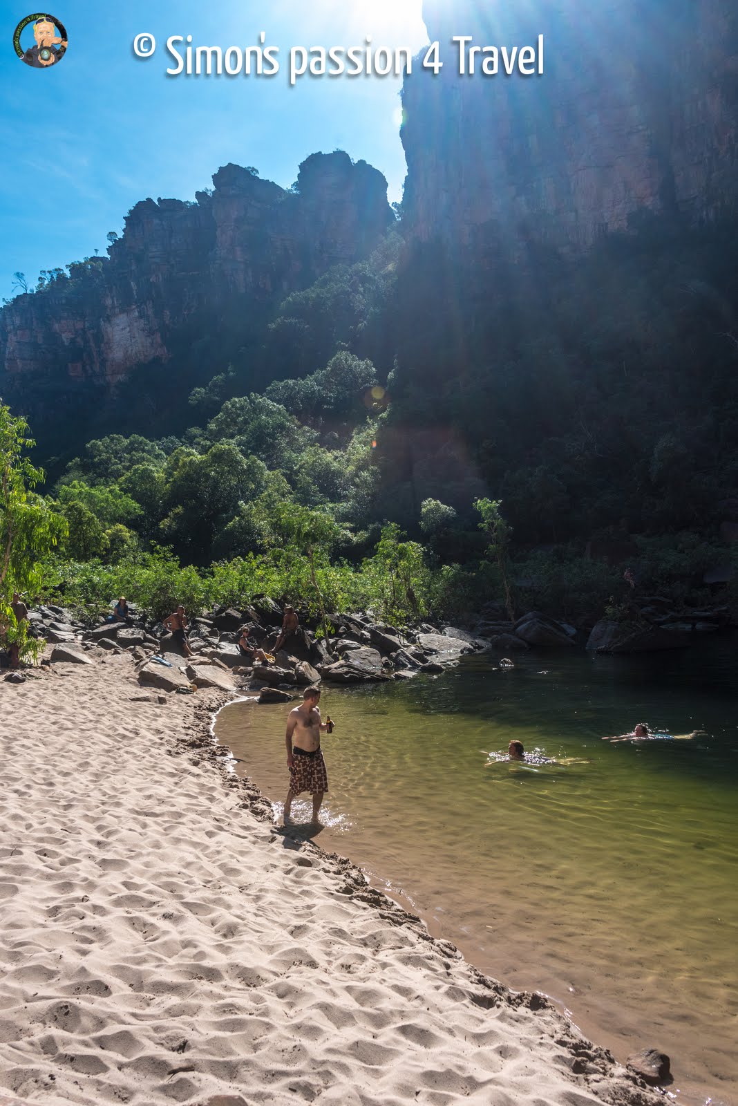 Da qui parte un tracciato decisamente sconnesso e stretto che ogni tanto presenta anche guadi di una certa entità. Si arriva ad uno slargo dove si lascia il fuoristrada per salire su delle imbarcazioni che risalgono una gola tra due pareti rocciose. Si percorre quindi un ultimo tratto a piedi per arrivare al Twin gorge dove si tuffano le omonime cascate. Una piscina naturale, luogo sacro agli aborigeni e per questo motivo non più balneabile, anche se un tuffo rigenerante in queste acque non sarebbe affatto male.