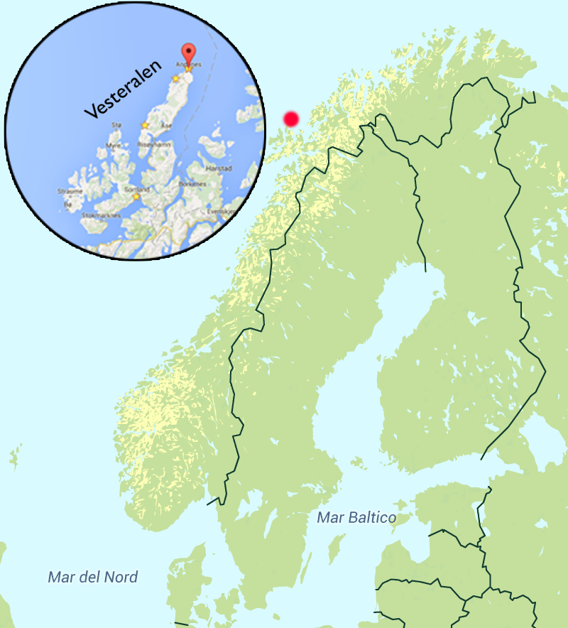 All’estremità nord delle isole Vesteralen sorge il paese di Andenes, Siamo in prossimità della punta settentrionale della Norvegia, sulla costa occidentale.